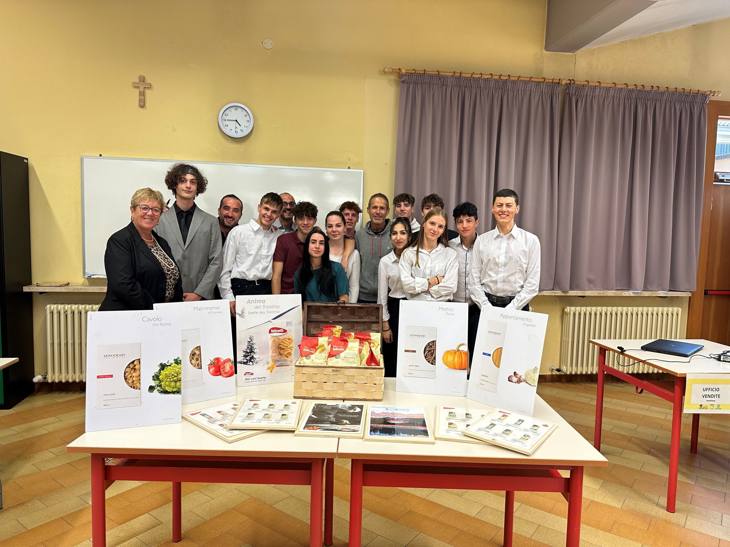 Le aziende costituite simulano la vendita di prodotti di due aziende madrine, il Pastificio Felicetti e La Sportiva, alle quali va il nostro ringraziamento per la gentile e proficua collaborazione.