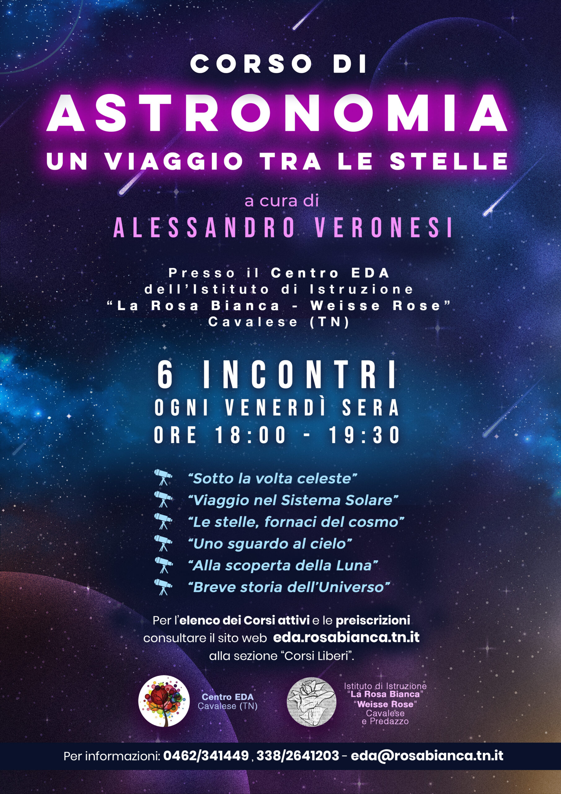 Un viaggio spaziale alla portata di tutti- arricchito da materiale audiovisivo e software astronomico – vi condurrà alla scoperta di alcuni dei misteri del Cosmo.